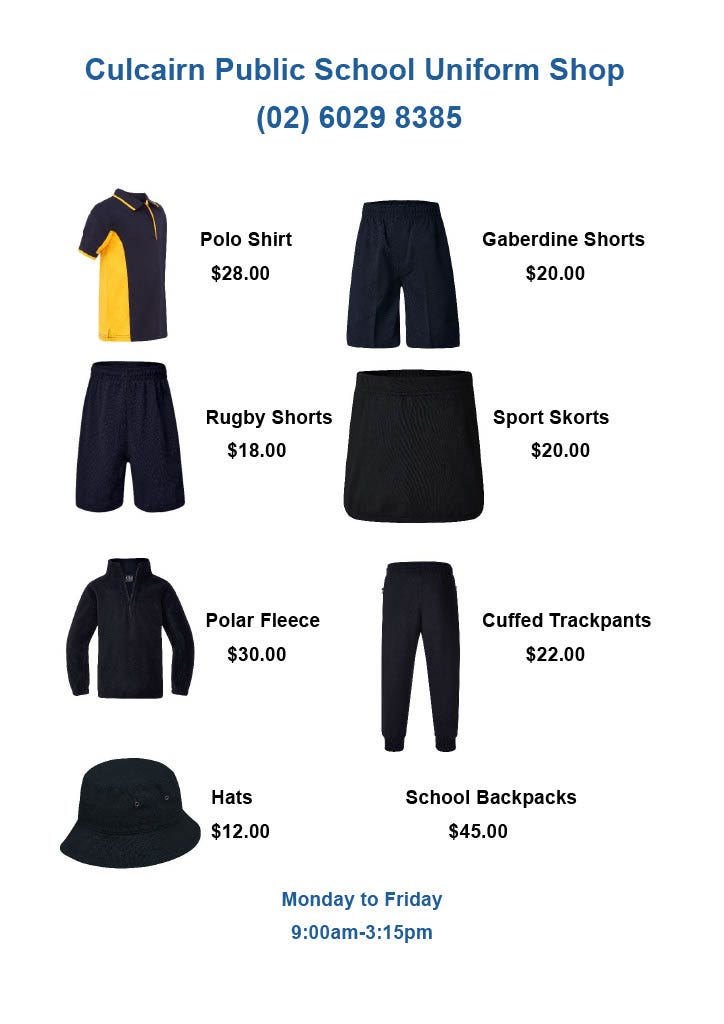 Uniforms can be purchased from the school office between 8:45 am and 3:15 pm on school days.